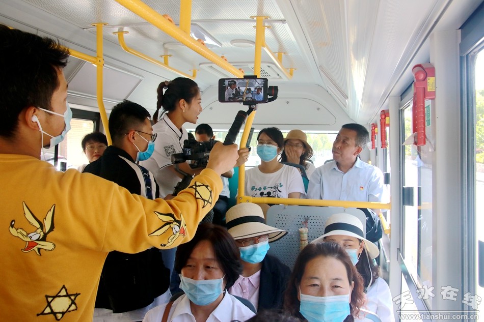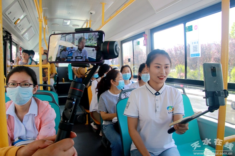 (天水在線主播萌萌正在全程直播武山縣城至水簾洞旅游公交線路通車情況)