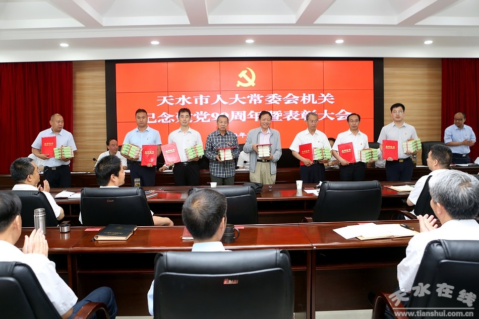 7月1日上午,天水市人大常委會機關(guān)舉行紀念建黨99周年暨表彰大會。市人大常委會黨組書記蔣曉強,黨組副書記宋建平,黨組成員王曉琴、楊永暉、楊坤出席會議。機關(guān)在職黨員和受表彰退休黨員參加會議。