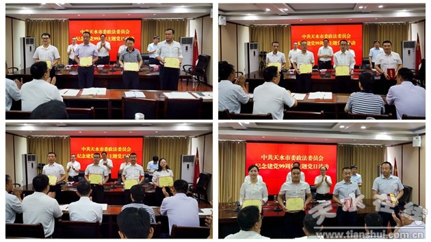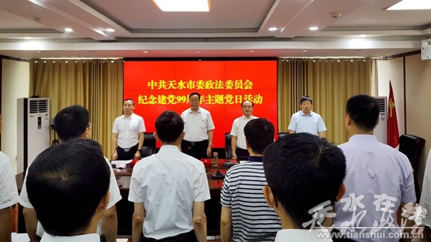 7月1日上午,天水市委政法委舉行了“不忘初心跟黨走,牢記使命勇?lián)敗奔o念建黨99周年主題黨日活動。市委政法委常務副書記、黨總支部書記陳璧田同志主持活動并講話,機關全體黨員干部參加活動。