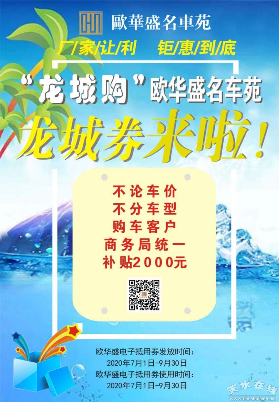 天水歐華盛汽車(chē)銷(xiāo)售服務(wù)有限公司 活動(dòng)地點(diǎn):天水市麥積區(qū)二十里鋪工業(yè)園區(qū) 聯(lián)系電話(huà):18193887379