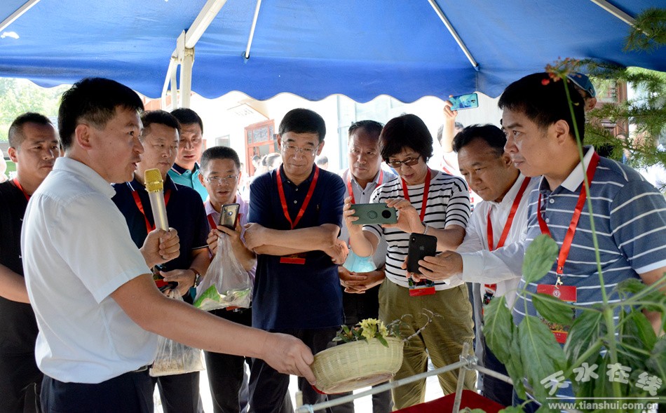 (與會(huì)人員觀摩麥積區(qū)麥積鎮(zhèn)草灘村扶貧產(chǎn)業(yè)園)