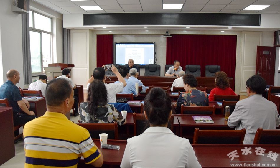 7月28日,隴南市人大常委會副主任、隴南市社會主義學(xué)院院長、隴蜀文化學(xué)者高天佑先生受邀在天水孔子文化研究學(xué)院為大家做了題為《隴學(xué)發(fā)凡》的學(xué)術(shù)講座。天水孔子文化研究學(xué)院副理事長、常務(wù)副院長張國強主持講座,天水孔子文化研究學(xué)院各部門負(fù)責(zé)人、部分會員及我市傳統(tǒng)文化愛好者三十余聆聽了講座。