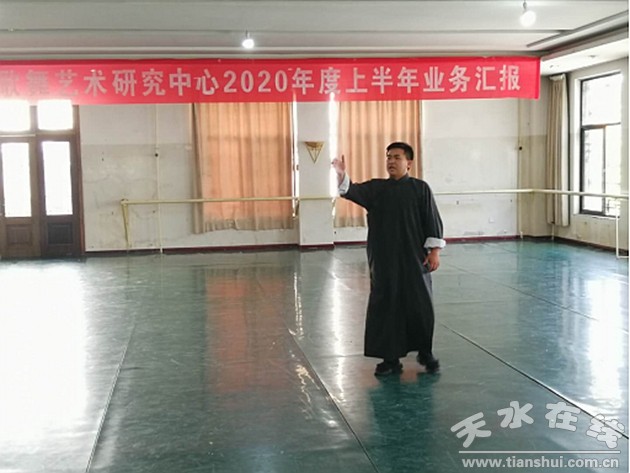 近年來,天水市歌舞藝術研究中心業(yè)務人員因藝校教學和基層下鄉(xiāng)演出任務,集體練功時間無法保證。為了保證業(yè)務人員的專業(yè)技能不會丟失,整體素質不會下降,努力安排好專業(yè)人員演出、排練和基本功訓練時間,設法調(diào)動演員堅持練功、練聲的積極性。