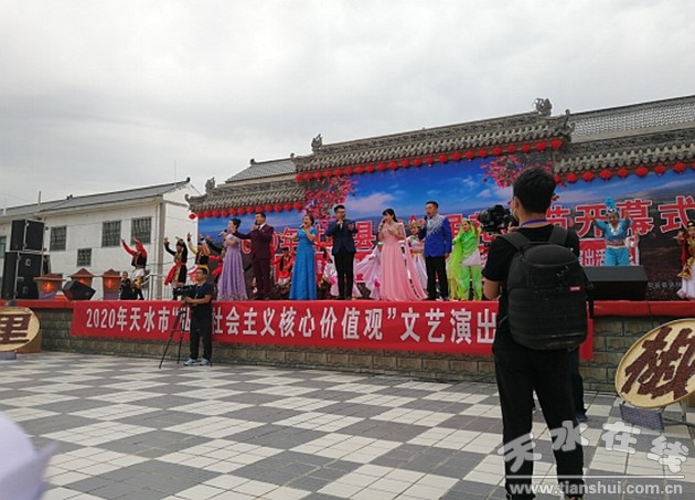 天水市歌舞藝術(shù)研究中心精彩的歌舞表演《母親是中華》、《國家》、《24字歌》、《天水“攢勁人”》,相聲《美人丑人》、歌曲《好人就在身邊》、《左鄰右舍》及器樂節(jié)目等贏得了現(xiàn)場觀看節(jié)目的農(nóng)民朋友們的陣陣掌聲和笑聲。