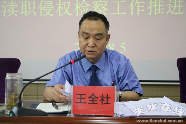 為進一步理清工作思路,找準工作著力點,深入推進全市執(zhí)檢條線工作持續(xù)穩(wěn)步開展。8月5日,天水市人民檢察院組織召開全市檢察機關刑事執(zhí)行和司法瀆職侵權檢察工作推進會。市檢察院黨組成員、副檢察長王全社出席會議并講話,各縣(區(qū))院執(zhí)檢條線分管副檢察長、執(zhí)檢部門負責人及市檢察院第三檢察部全體干警參加了會議。