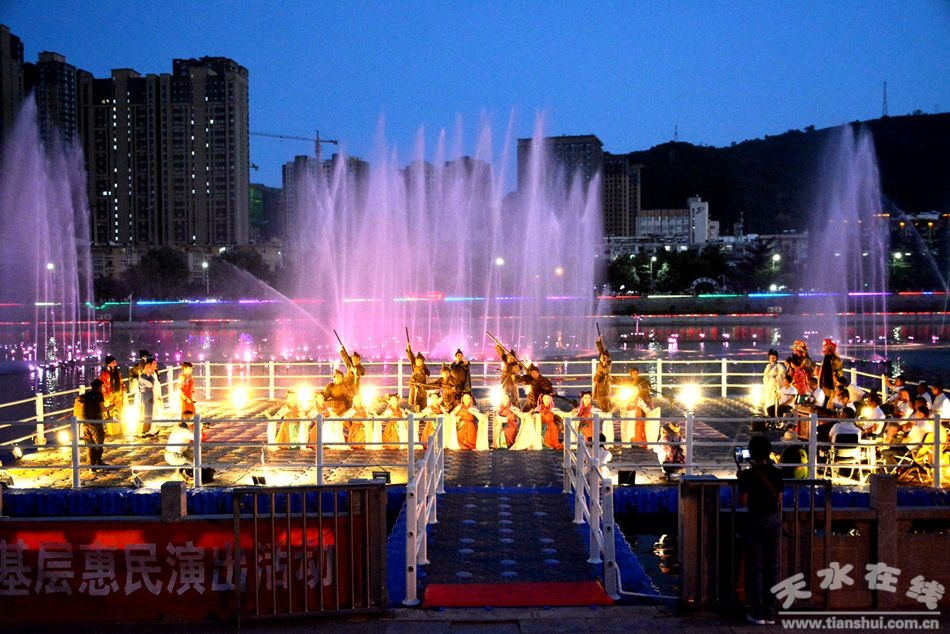 7月26日(周日)晚,由中共天水市委宣傳部、市文化和旅游局主辦,天水市西秦腔研究院(天水市秦劇團)承辦,天水湖管理處、天水在線協(xié)辦的“同心奔小康 奮進新時代”2020年天水市“紅色文藝輕騎兵”下基層惠民演出活動在天水湖精彩上演。