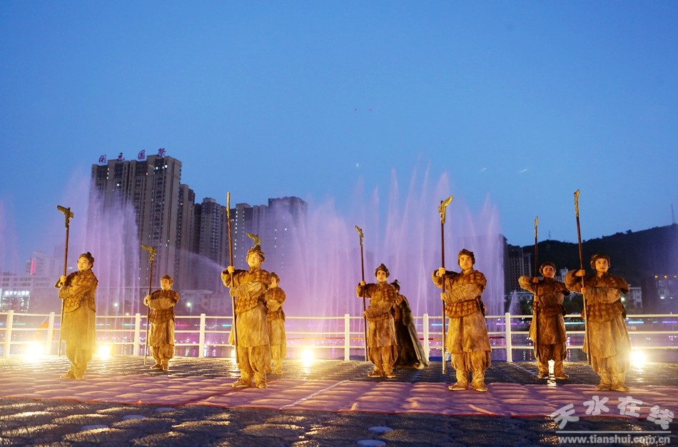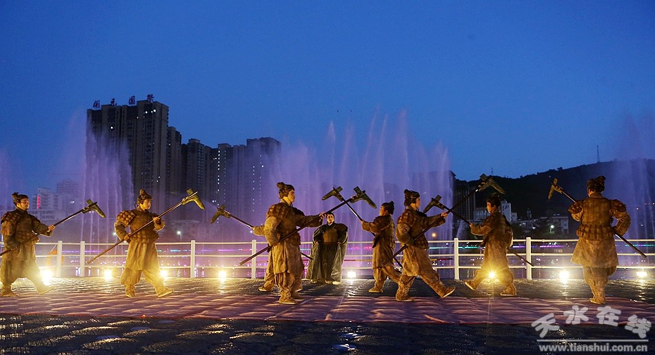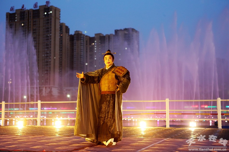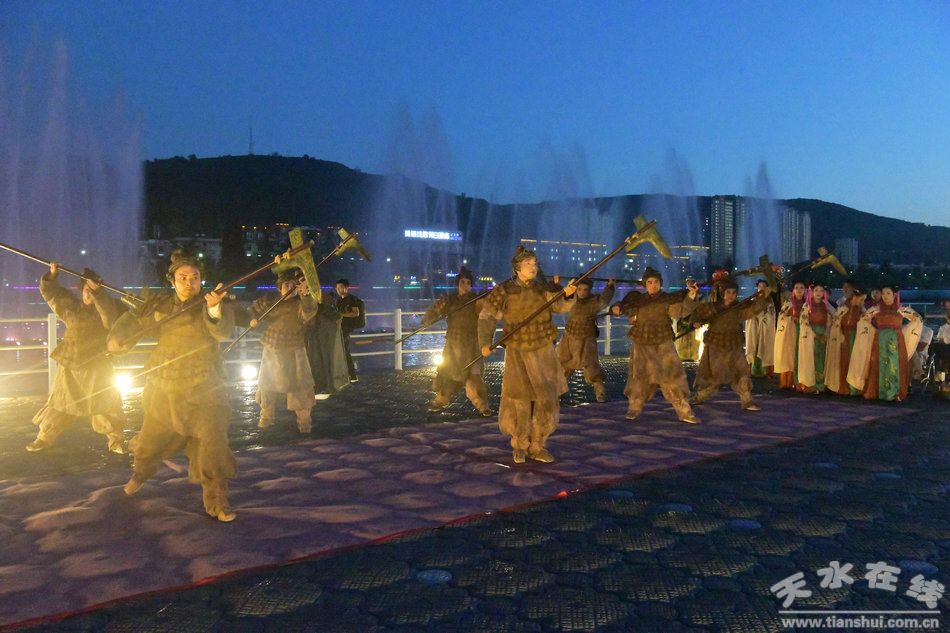 當(dāng)晚,由天水市西秦腔研究院按照“戲曲+旅游”融合發(fā)展模式,在原大型原創(chuàng)秦腔歷史劇《大秦文公》基礎(chǔ)上,改編的旅游版《大秦文公》進行了首演。旅游版《大秦文公》由漆金喜和張云鵬主演,由導(dǎo)演劉維新根據(jù)“戲曲+旅游”的特點進行了重新打造、重新編排。