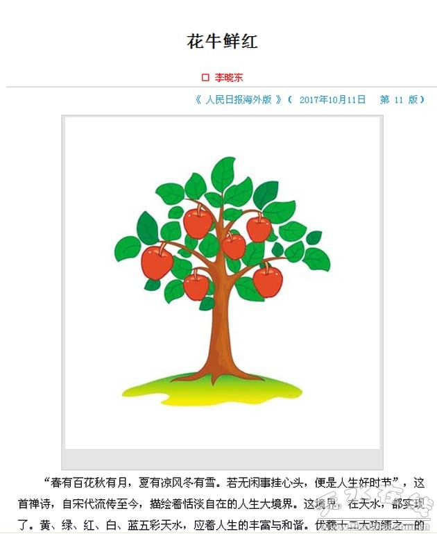 (《 人民日報海外版 》( 2017年10月11日 第 11 版 截圖)