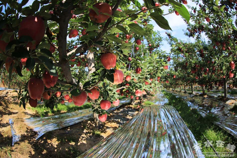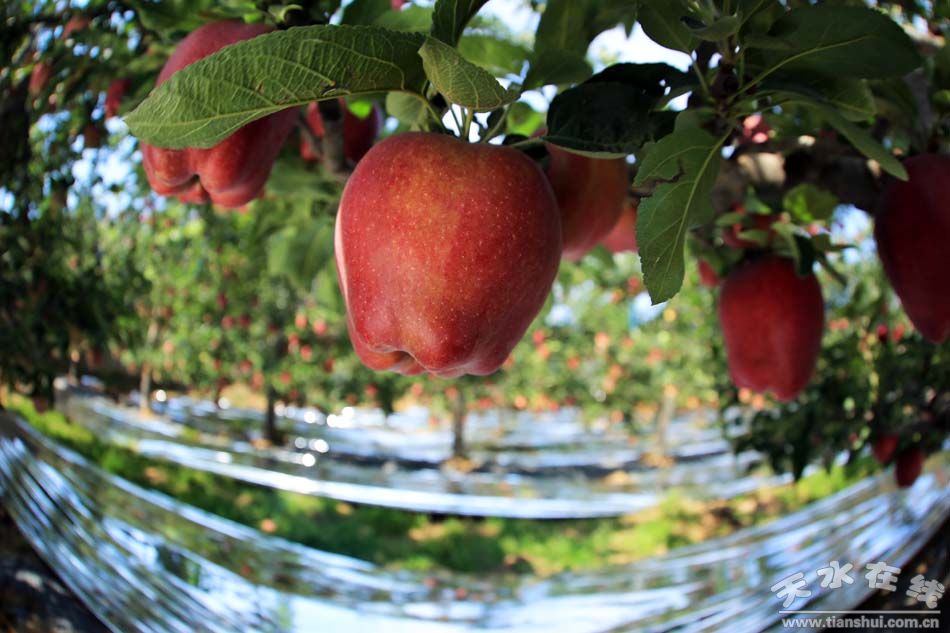南宋詩人劉克莊《鶯梭》詩敘織布曰“擲柳遷喬太有情,交交時作弄機聲。洛陽三月花如錦,多少工夫值得成!被ㄅLO果天生地長,非人力所能及者,然而我們收獲的花牛,卻蘊含了果農(nóng)辛勤而科學(xué)的勞動。先前觀念里,判斷一棵果樹好還是不好,最重要的標(biāo)準(zhǔn),就是結(jié)子“稠不稠”,“果實累累壓彎了枝頭”就是一派豐收的喜人景象。今天的花牛卻恰恰不能這樣。蘋果花開,五朵一簇。第一道工序,就是疏花。手工摘去四朵,僅余一朵,減少數(shù)量,保證質(zhì)量。果實結(jié)出,又需疏果,果與果之間,留出足夠空間,促其成長而壯大。至夏季,每顆蘋果都人工一個個套袋,給幼小的蘋果,穿上防護服。烈日當(dāng)空,枝繁葉茂,此事辛苦,自不待言。然功用亦大,最重要的,就是防止農(nóng)藥噴到果實,確保綠色無污染。到果園,見碩果垂垂的樹下,長長地鋪著亮銀色的膜,但不是常見的塑料薄膜。我不解,果園主人答,是反光膜,陽光反射,照到下垂的蘋果頭部,保證光照均勻,每個花牛蘋果,都紅得秋深似海,紅得像天水人的心一樣扎實。
