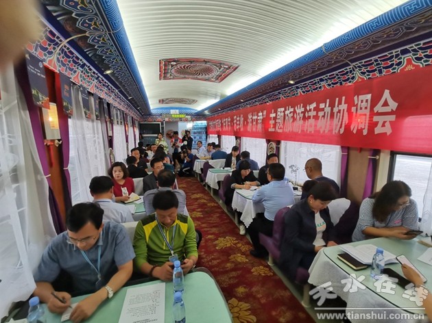 火車行進(jìn)途中,省文旅廳副廳長萬學(xué)科主持召開了“慶雙節(jié)·游甘肅”主題旅游產(chǎn)品和優(yōu)惠政策發(fā)布會(huì),發(fā)布了國慶、中秋期間全省及各市州旅游主題產(chǎn)品、優(yōu)惠政策及主題活動(dòng)。全省14個(gè)市州和蘭州新區(qū)文旅局長,相關(guān)單位負(fù)責(zé)人,媒體記者和文旅企業(yè)代表、旅行社代表參加了發(fā)布會(huì)。