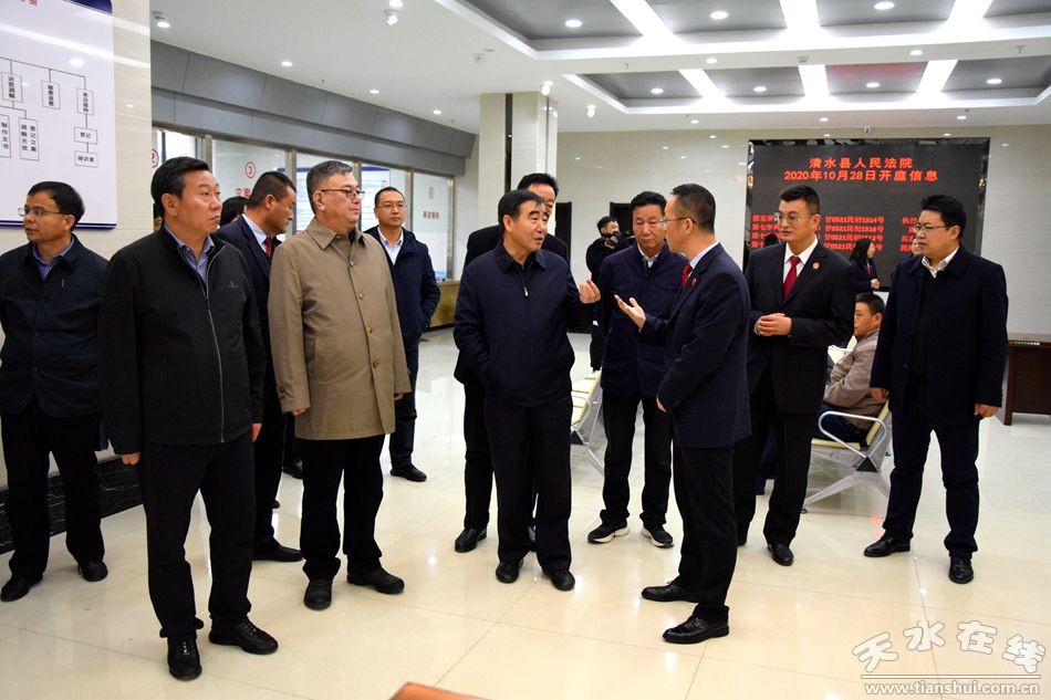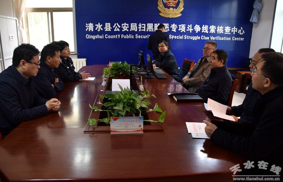 10月28日,省委政法委常務副書記李韻東同志一行先后深入清水縣公安局、縣綜治中心、縣法院等單位,對掃黑除惡專項斗爭開展情況和綜治中心規(guī)范化建設進行調研。市委常委、政法委書記蒲軍一同參加調研活動。