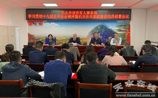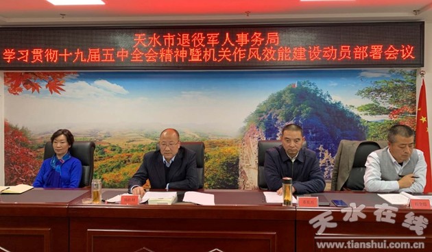 11月5日,天水市退役軍人事務(wù)局召開(kāi)專(zhuān)題會(huì)議,傳達(dá)學(xué)習(xí)十九屆五中全會(huì)精神,部署開(kāi)展機(jī)關(guān)作風(fēng)效能建設(shè)工作。