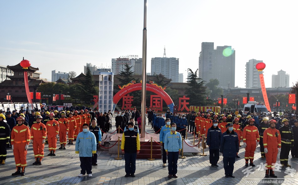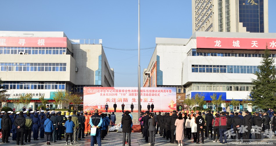 11月7日,紀(jì)念習(xí)近平總書(shū)記向國(guó)家綜合性消防救援隊(duì)伍授旗訓(xùn)詞兩周年暨2020年天水市“119”消防宣傳月活動(dòng)啟動(dòng)儀式在秦州區(qū)龍場(chǎng)廣場(chǎng)舉行。市委常委、副市長(zhǎng)景丹參加活動(dòng)并宣布天水市2020年度“119”消防宣傳月活動(dòng)啟動(dòng)。