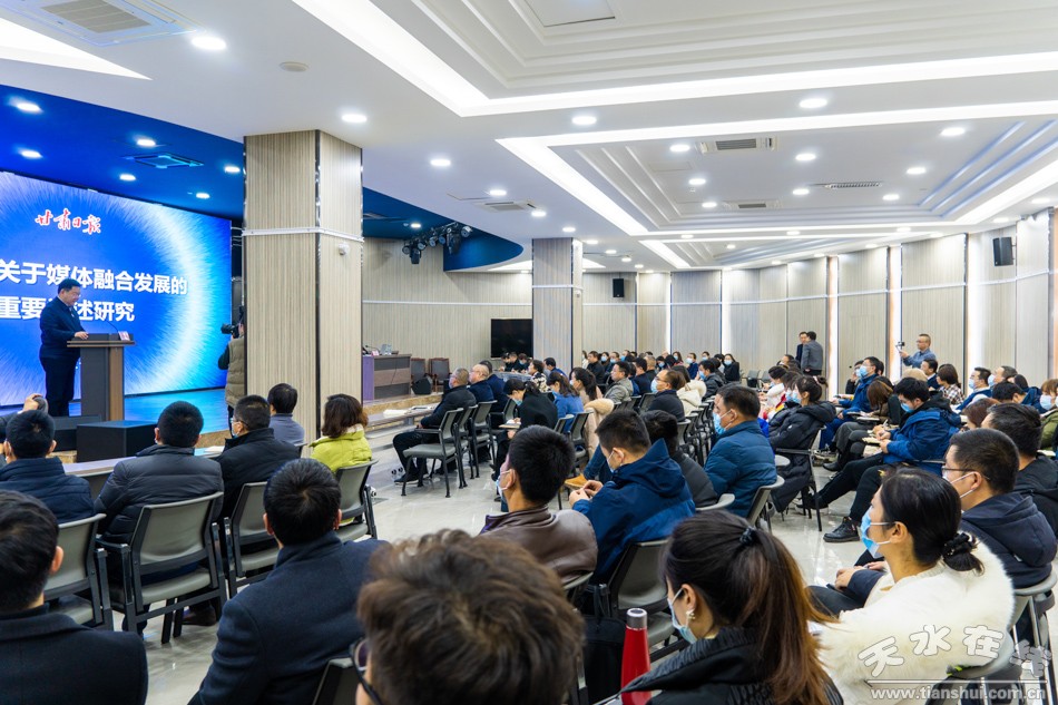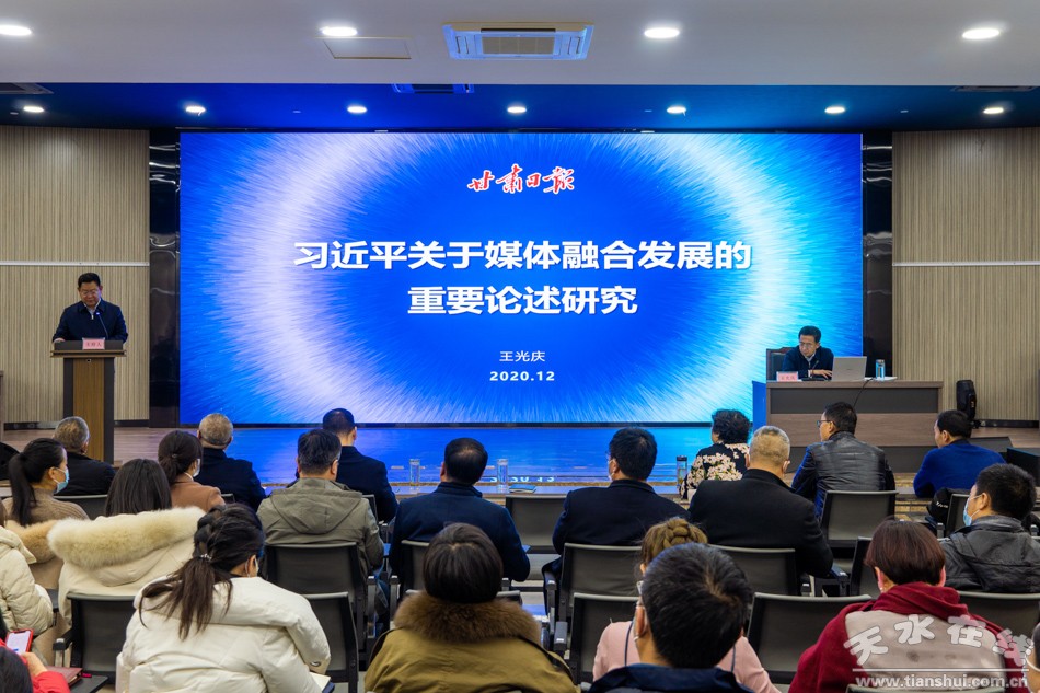 12月4日下午,甘肅日報(bào)社社長、甘肅日報(bào)報(bào)業(yè)集團(tuán)黨委書記、董事長王光慶在天水日報(bào)社為全市新聞宣傳系統(tǒng)的干部職工作了題為《習(xí)近平關(guān)于媒體融合發(fā)展的重要論述研究》的專題講座。