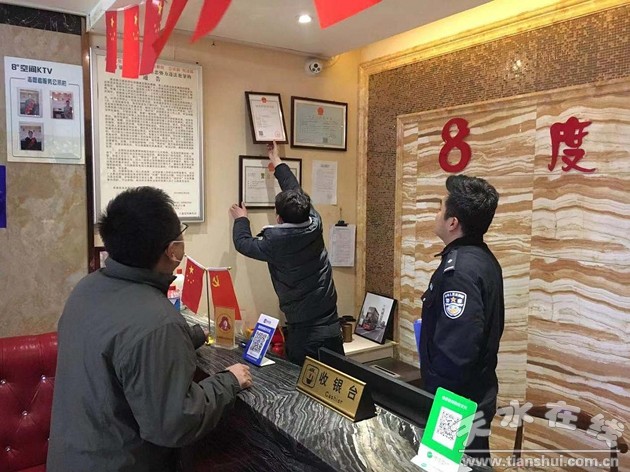 檢查過程中,執(zhí)法人員依據(jù)各自部門工作職責(zé),按照“進(jìn)一次門,查多項(xiàng)事”的工作原則,通過現(xiàn)場勘驗(yàn)、詢問、查閱資料等方式對隨機(jī)抽取的12家歌舞娛樂場所(其中秦州區(qū)英皇御宴餐飲有限公司停業(yè))進(jìn)行了檢查。一是檢查是否落實(shí)安全生產(chǎn)主體責(zé)任、建立健全安全管理制度和應(yīng)急預(yù)案、員工安全教育培訓(xùn)和治安狀況。二是檢查《營業(yè)執(zhí)照》《娛樂經(jīng)營許可證》《公共聚集場所投入使用、營業(yè)前消防安全檢查合格證》等證照許可證載明事項(xiàng)是否與現(xiàn)場檢查情況一致。三是檢查歌曲點(diǎn)播系統(tǒng)是否與境外曲庫聯(lián)接、安裝曲庫曲目是否合法,經(jīng)營日志是否登記完善。四是檢查疫情防控常態(tài)化措施是否落實(shí),掃黑除惡專項(xiàng)斗爭、“掃黃打非”宣傳是否到位等。從檢查情況看,12家歌舞娛樂場所能夠按照國家相關(guān)法律法規(guī)的規(guī)定依法經(jīng)營,未發(fā)現(xiàn)各類違法違規(guī)經(jīng)營行為。