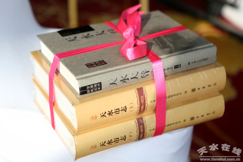 會議還邀請各界代表進行了發(fā)言,并授贈了《天水市志(1985—2010)》《天水大辭典》。