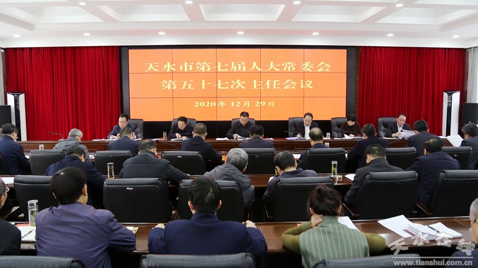 12月29日,天水市人大常委會主任蔣曉強主持召開市七屆人大常委會第五十七次主任會議。市人大常委會副主任安志宏、宋建平、王曉琴、楊永暉,秘書長楊坤出席會議。