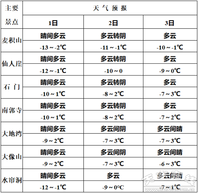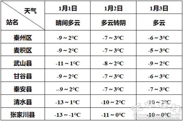 【摘要】2021年1月1日~3日,全市天氣以多云為主,日最高氣溫-1~3℃,日最低氣溫-13~-5℃。元旦期間溫度較前期有所回升,適宜出行。
