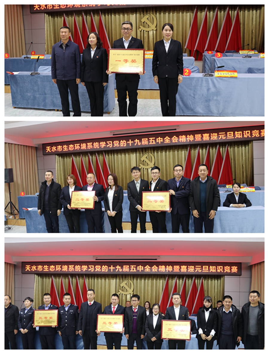 為深入學(xué)習(xí)貫徹黨的十九屆五中全會(huì)精神,全面準(zhǔn)確把握習(xí)近平總書(shū)記在黨的十九屆五中全會(huì)上的重要講話精神,學(xué)懂弄通黨的十九屆五中全會(huì)提出的一系列重大理論觀點(diǎn)、重大決策部署,自覺(jué)把思想和行動(dòng)統(tǒng)一到全會(huì)精神上來(lái),增強(qiáng)“四個(gè)意識(shí)”,堅(jiān)定“四個(gè)自信”,做到“兩個(gè)維護(hù)”,掀起學(xué)習(xí)新高潮,12月29日,天水市生態(tài)環(huán)境局舉辦了全市生態(tài)環(huán)境系統(tǒng)學(xué)習(xí)黨的十九屆五中全會(huì)精神暨喜迎元旦知識(shí)競(jìng)賽活動(dòng)。