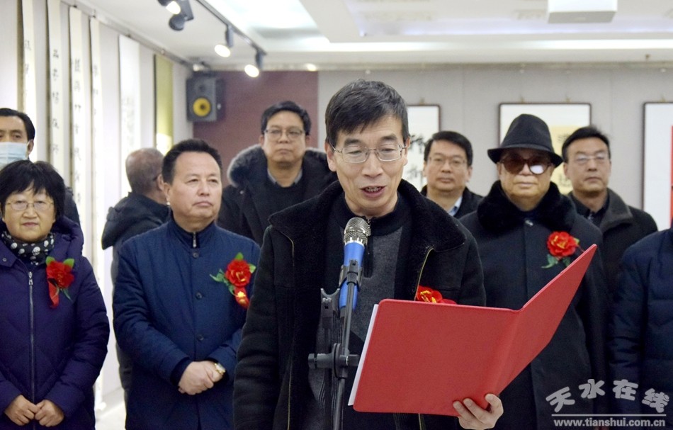 (天水師范學(xué)院黨委常委、副校長王文東宣布展覽開幕)