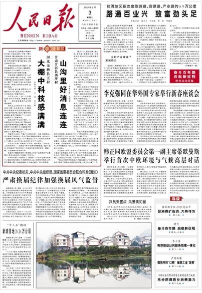 《 人民日報 》( 2021年02月03日 第 01 版)