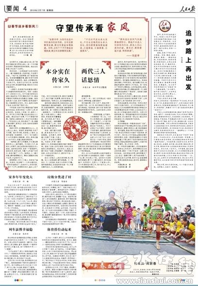 《人民日報 》(2017年02月02日)頭版頭條刊登了人民日報記者王錦濤的返鄉(xiāng)記《大坪村,變化大》,同時,《人民日報 》(2017年01月28日)4版刊登了人民日報記者王錦濤采寫的《秦腔吼出新年景》的文章。兩篇文章分別描寫了王錦濤春節(jié)返鄉(xiāng)期間對家鄉(xiāng)大坪村的所見所聞及自己的親身感受,在天水引起了強烈反響,大家紛紛為家鄉(xiāng)登上《 人民日報 》感到驕傲。
