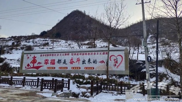 甘肅甘谷縣磐安鎮(zhèn)西坪村村頭的大標語