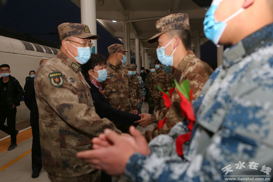 3月18日早上6點多鐘,在天水南站,二百余名新兵身著新戎裝、肩披紅綬帶、胸佩光榮花,帶著家人的期望和祖國的重托,離開家鄉(xiāng)奔赴軍營,開啟軍旅生活。市委常委、天水軍分區(qū)司令員宋英武,副市長汪小娟,天水軍分區(qū)政委石明,市退役軍人事務(wù)局主要負(fù)責(zé)同志等為新兵送行。