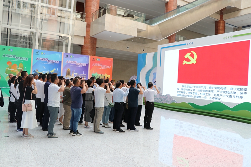 全體黨員重溫入黨誓詞,在講解員的引導(dǎo)下,全面參觀了全省生態(tài)環(huán)境保護(hù)成就展和生態(tài)環(huán)境保護(hù)產(chǎn)業(yè)成果展,深刻感悟“十三五”時(shí)期全省和我市生態(tài)環(huán)境保護(hù)事業(yè)取得的巨大成就,進(jìn)一步堅(jiān)定了“十四五”時(shí)期生態(tài)環(huán)境保護(hù)工作的信心和決心。