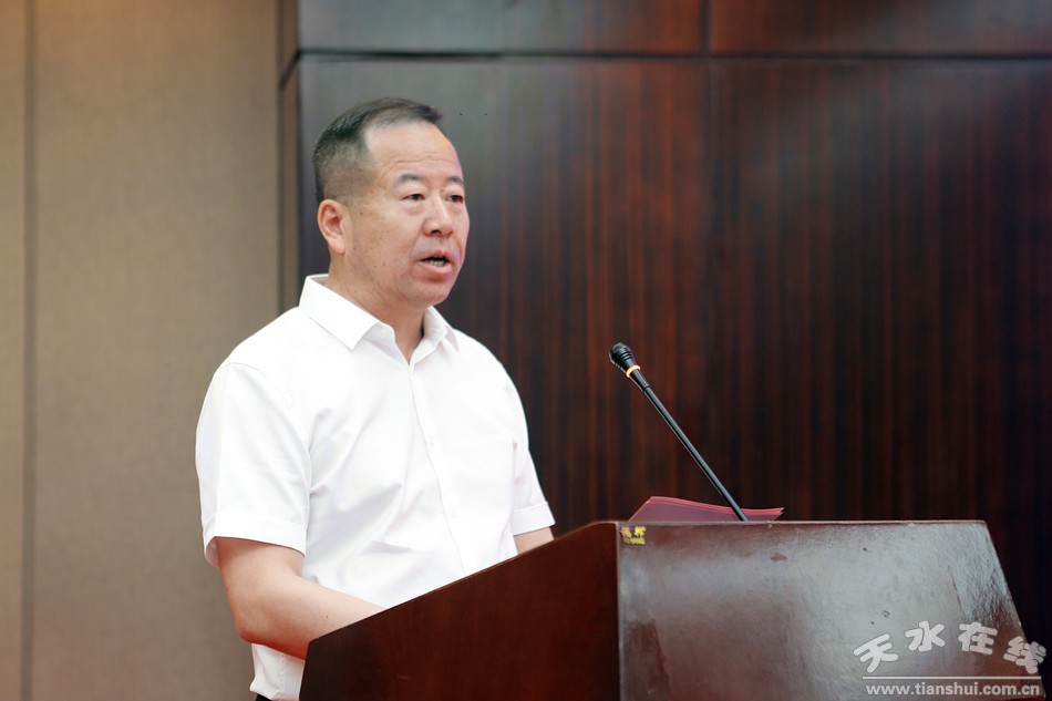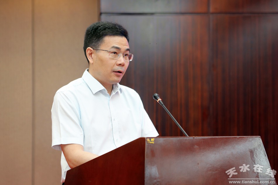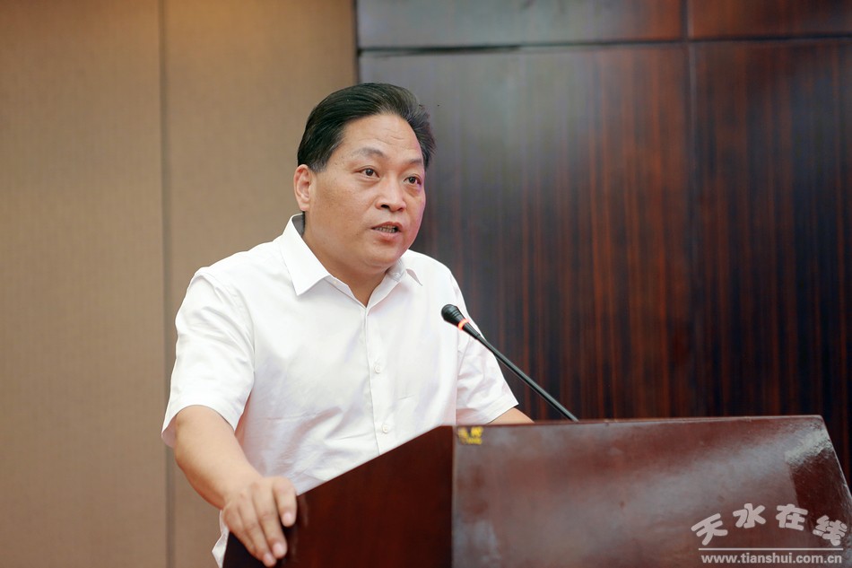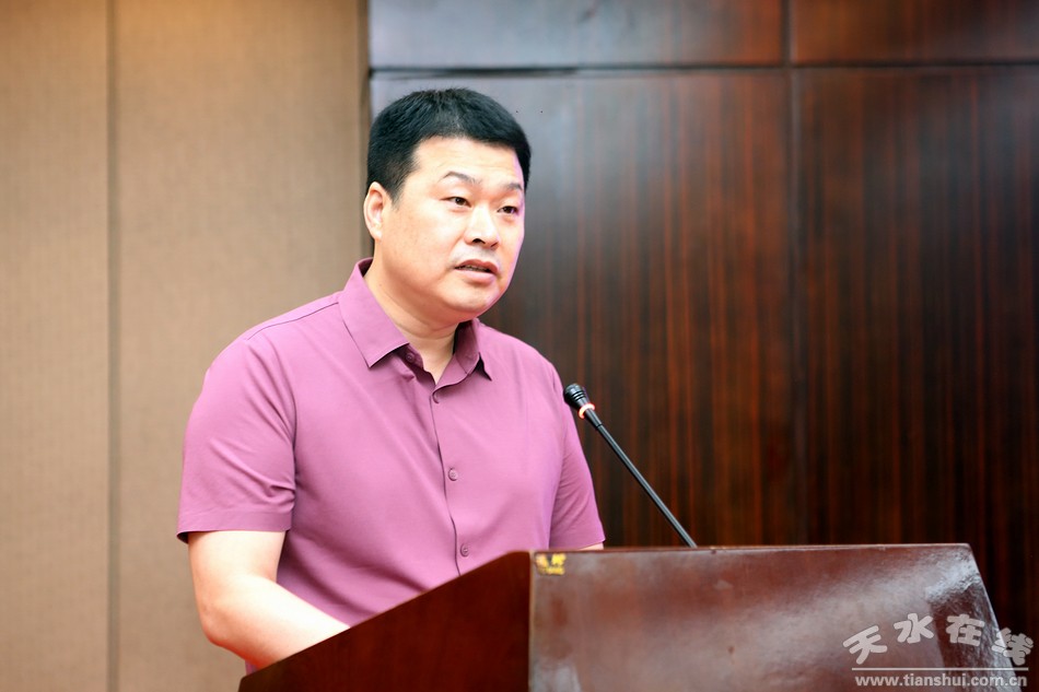 (甘肅(天水)國際陸港管理委員會黨工委書記、主任趙曉東主持簽約儀式。)