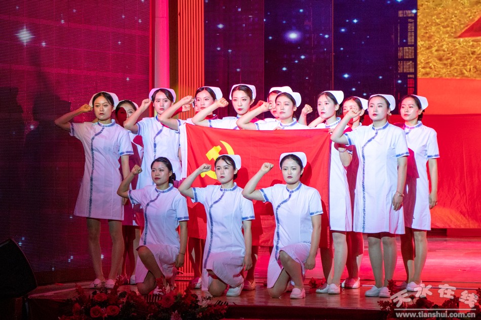 ▲天水市衛(wèi)生健康系統(tǒng)慶祝中國共產(chǎn)黨成立100周年文藝演出暨頒獎晚會在秦州劇院舉行