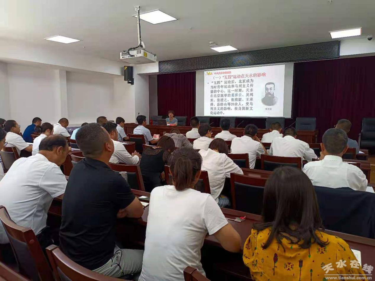 為慶祝中國(guó)共產(chǎn)黨成立100周年,深入推進(jìn)黨史學(xué)習(xí)教育工作,從黨史中汲取力量,在實(shí)踐中砥礪前行,7月1日下午,麥積山大景區(qū)管委會(huì)、麥積山文旅公司邀請(qǐng)?zhí)焖惺形h校科技與文化教研室副主任、講師、中共天水市委講師團(tuán)成員劉巖老師作《光輝的歷程、偉大的使命——中國(guó)共產(chǎn)黨在天水的歷史》黨史專題宣講。管委會(huì)、公司領(lǐng)導(dǎo)班子成員、各基層支部黨員、機(jī)關(guān)全體干部職工一起參加學(xué)習(xí)。