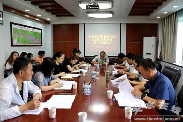 為全面了解我市社工站推進(jìn)情況,研究部署下步重點(diǎn)工作,確保社工站建設(shè)工作順利推進(jìn)。7月7日,天水市鄉(xiāng)鎮(zhèn)(街道)社會工作服務(wù)站建設(shè)第二次調(diào)度會在天水市民政局三樓會議室召開。天水市民政局副局長李虎、秦州區(qū)民政局、麥積區(qū)民政局、清水縣民政局以及三家承接社工站機(jī)構(gòu)負(fù)責(zé)人與駐站社工參加此次會議。