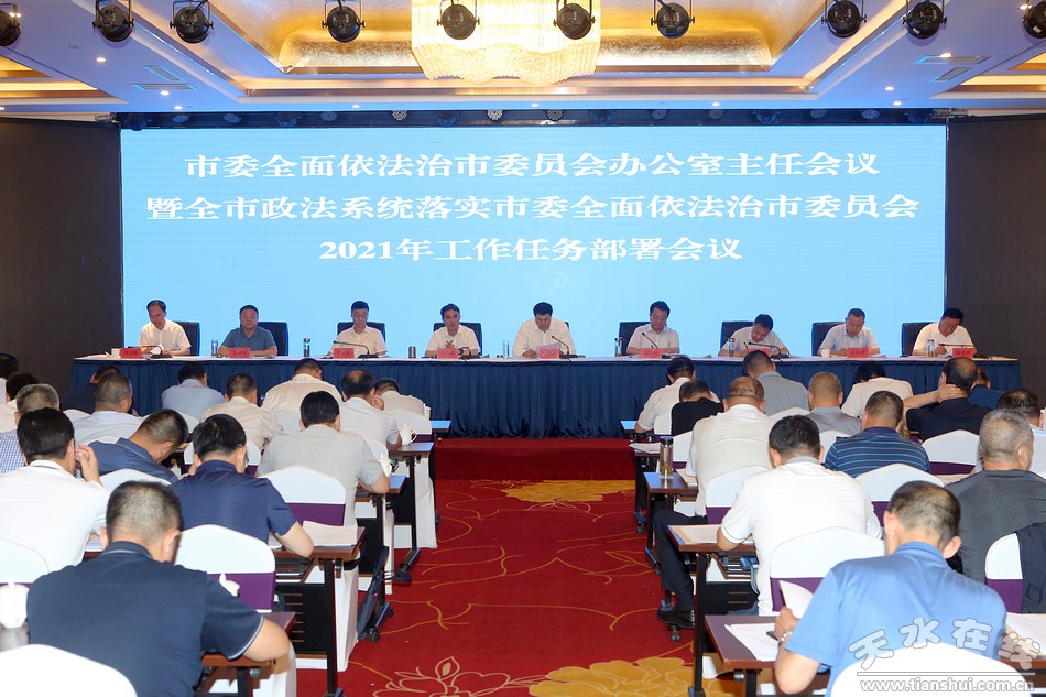 7月12日,天水市召開市委全面依法治市委員會辦公室主任會議暨全市政法系統(tǒng)落實市委全面依法治市委員會2021年工作任務部署會議,傳達學習中央和省、市委有關會議文件精神,審議了有關文件,對依法治市和法治政府建設工作進行了全面安排部署。市委常委、政法委書記、市委全面依法治市委員會辦公室主任劉天波出席會議并講話。副市長、市公安局局長郭慶祥主持會議,市中級法院院長馬忠福、市檢察院檢察長張發(fā)魁出席會議。