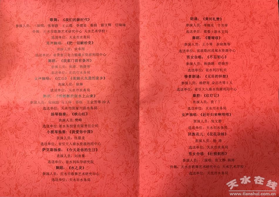 7月16日晚,“慶祝建黨百年華誕 再普水利壯美篇章”——熱烈慶祝建黨100周年甘肅水利文藝巡演(天水)在天水賓館會議中心演出。