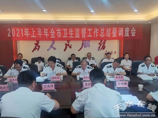 為全面總結(jié)2021年上半年工作開展情況,分析研判當(dāng)前形勢(shì),全力做好衛(wèi)生監(jiān)督工作,有序推進(jìn)年度重點(diǎn)工作高效有序開展,7月20日上午,天水市衛(wèi)計(jì)委綜合監(jiān)督執(zhí)法局召開了上半年全市衛(wèi)生監(jiān)督工作總結(jié)暨調(diào)度會(huì)。會(huì)議由黨總支書記、局長(zhǎng)葛彥迪主持,局領(lǐng)導(dǎo)班子成員、各縣區(qū)所(局)負(fù)責(zé)人、市局各科科長(zhǎng)、副科長(zhǎng)共24人參加了會(huì)議。