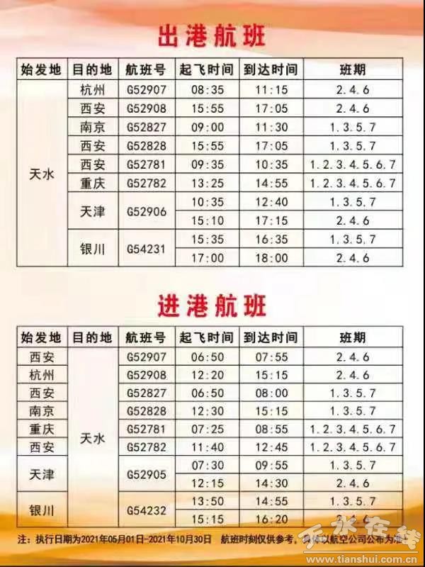 天水機(jī)場(chǎng)航班時(shí)刻表