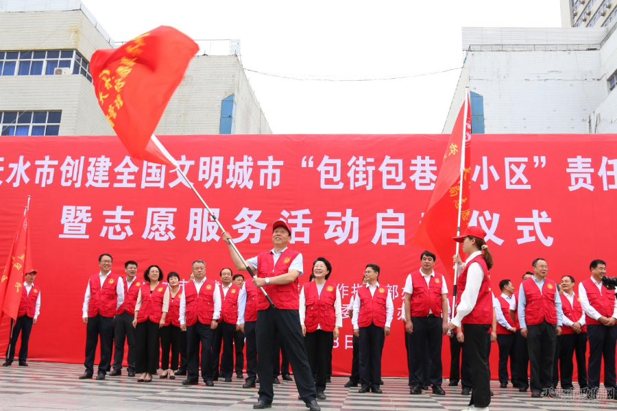 8月28日上午,天水市創(chuàng)建全國文明城市“包街包巷包小區(qū)”責(zé)任制落實暨志愿服務(wù)活動啟動儀式在龍城廣場舉行,市四大組織全體領(lǐng)導(dǎo)出席,市委書記張永霞向秦州、麥積和市直21家部門單位授予天水市志愿服務(wù)隊旗。市市場監(jiān)管局黨組書記、局長王宏瑋代表市市場監(jiān)管局志愿服務(wù)隊領(lǐng)授隊旗,局系統(tǒng)40多名干部職工參加了啟動儀式,并依托啟動儀式開展了食品、藥品、特種設(shè)備和產(chǎn)品質(zhì)量安全及消費維權(quán)等法律法規(guī)宣傳工作。