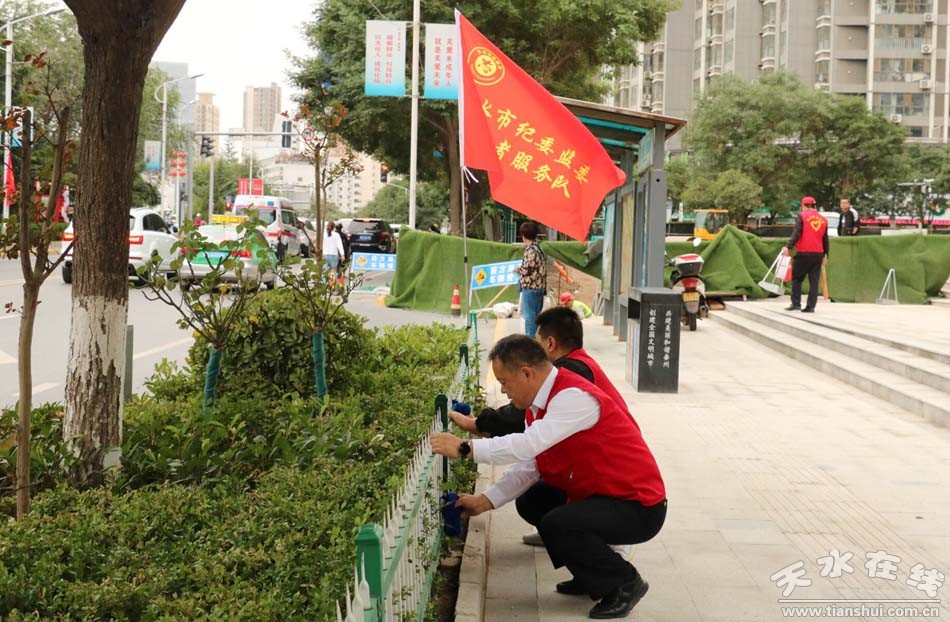 為深入貫徹市委七屆十四次全會精神,認真落實創(chuàng)建全國文明城市“包街包巷包小區(qū)”責任制,9月3日,天水市委常委、市紀委書記、市監(jiān)委主任郝覺民帶領50余名紀檢監(jiān)察干部來到藉河北路“包街”路段開展志愿服務活動,以實際行動推動創(chuàng)建全國文明城市工作任務落實。