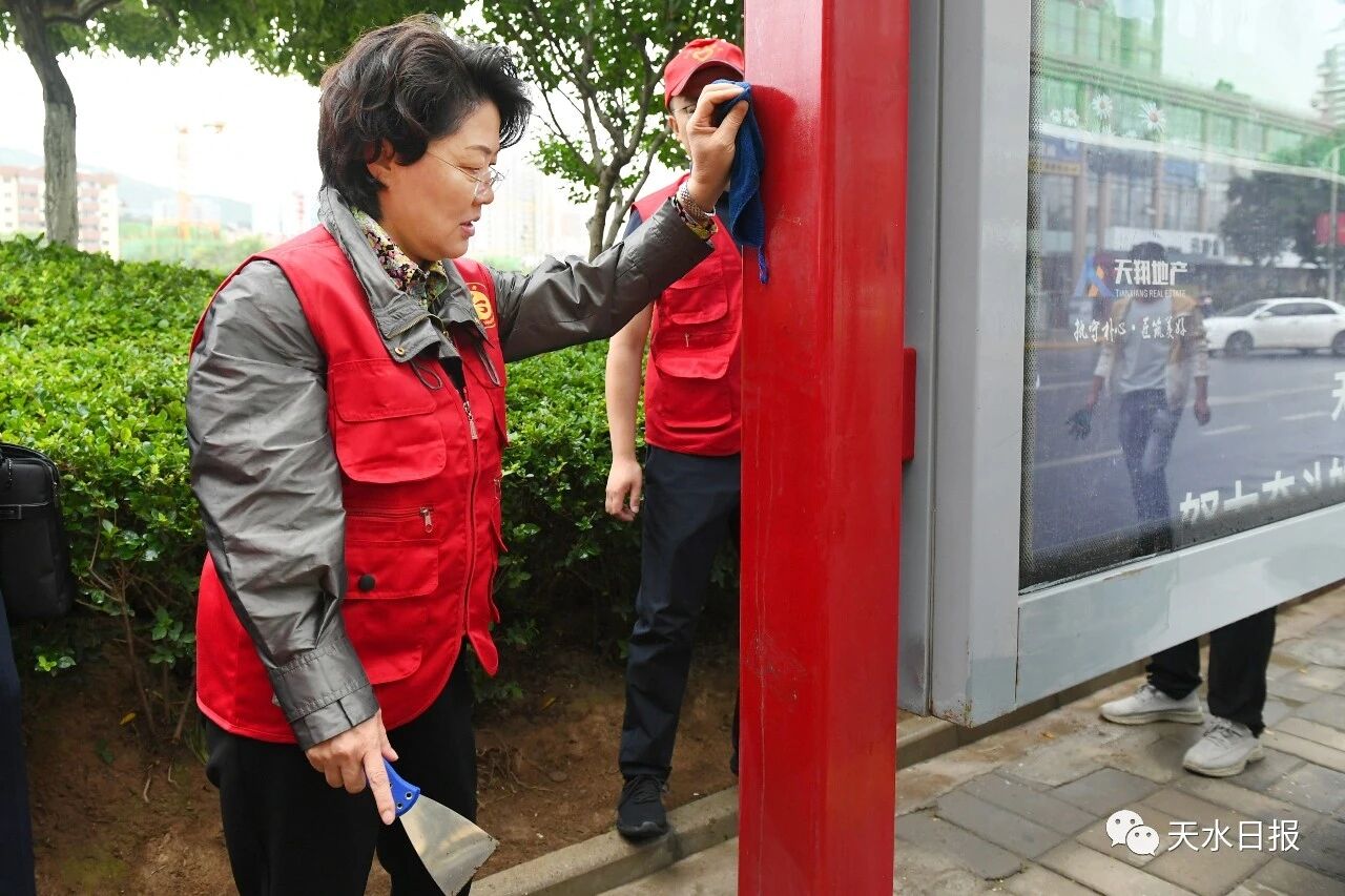 天水日?qǐng)?bào)訊【新天水·天水日?qǐng)?bào)記者楊璟】9月3日,市委書(shū)記張永霞來(lái)到市委辦公室創(chuàng)建全國(guó)文明城市分包路段,與機(jī)關(guān)志愿者一起打掃衛(wèi)生、整治環(huán)境。她強(qiáng)調(diào),全市各級(jí)各部門(mén)要認(rèn)真學(xué)習(xí)貫徹市委七屆十四次全會(huì)精神,牢固樹(shù)立“一流定位”“精致城市、精品項(xiàng)目”的理念,持之以恒抓長(zhǎng)效,注重細(xì)節(jié)再提升,高標(biāo)準(zhǔn)、高質(zhì)量推進(jìn)創(chuàng)建全國(guó)文明城市各項(xiàng)工作,全面提升群眾幸福指數(shù)和城市美譽(yù)度。