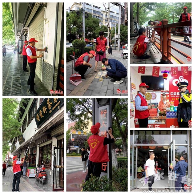 清潔環(huán)境齊動(dòng)手,做創(chuàng)城的實(shí)踐者。開展全方位、無死角衛(wèi)生清掃、街道凈化等志愿服務(wù)活動(dòng)。一是對(duì)責(zé)任區(qū)主次干道、公共區(qū)域、商鋪門口等公共場(chǎng)所市容環(huán)境衛(wèi)生進(jìn)行綜合整治,對(duì)非機(jī)動(dòng)車亂停亂放、亂扔雜物、亂貼小廣告等現(xiàn)象開展集中治理,對(duì)摩托車、電動(dòng)車、自行車亂停亂放行為,及時(shí)引導(dǎo),按指定停放區(qū)域擺放整齊;對(duì)沿街綠化帶、樹池里、信號(hào)燈等盲區(qū),開展集中打掃清理;對(duì)商鋪門口墻面膠質(zhì)物、油漆涂鴉、小廣告安排專人用香蕉水等清除劑進(jìn)行了進(jìn)一步清理。二是派專人對(duì)沿線單位和商鋪進(jìn)行走訪,確定聯(lián)系人和聯(lián)系方式,逐一進(jìn)行造冊(cè)登記。針對(duì)有些商鋪門面不整潔,門店廣告、物品倚門亂擺亂放,“門前三包”責(zé)任落實(shí)不到位等問題,逐個(gè)逐項(xiàng),當(dāng)面交辦,明確整改要求,做到事情有人管、問題有人接、整改能落實(shí)。三是互聯(lián)互動(dòng)共建共創(chuàng),加強(qiáng)與市創(chuàng)城指揮部各工作組和市文明辦的聯(lián)系,積極爭(zhēng)取工作指導(dǎo)和支持,及時(shí)傳達(dá)學(xué)習(xí)創(chuàng)城工作的最新安排部署和工作要求,全力組織實(shí)施,抓好貫徹落實(shí)。加強(qiáng)與“包街”責(zé)任路段轄區(qū)的交警、市場(chǎng)監(jiān)管、綜合執(zhí)法、園林管理、環(huán)衛(wèi)保潔等管理單位銜接,暢通聯(lián)絡(luò)渠道,強(qiáng)化溝通協(xié)調(diào),形成工作合力,確保“包街”各項(xiàng)工作高質(zhì)高效開展。
