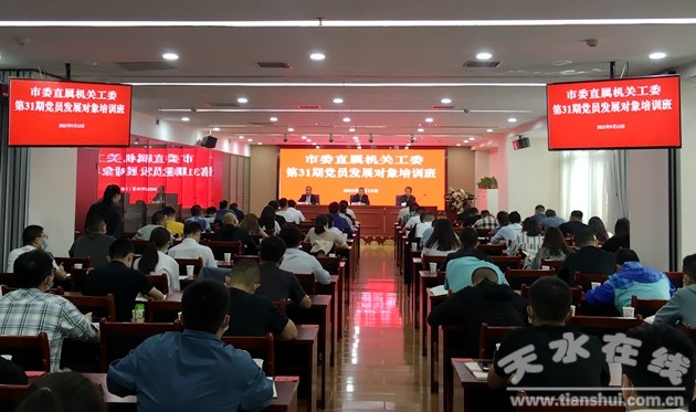 為提高黨員發(fā)展質(zhì)量,加強(qiáng)對(duì)黨員發(fā)展對(duì)象的培養(yǎng)教育,根據(jù)《中國(guó)共產(chǎn)黨發(fā)展黨員工作細(xì)則》相關(guān)要求,9月13日至15日,天水市委直屬機(jī)關(guān)工委舉辦了第31期(第二批)黨員發(fā)展對(duì)象培訓(xùn)班,來自21個(gè)市直及駐市部省屬機(jī)關(guān)事業(yè)單位的73名黨員發(fā)展對(duì)象參加培訓(xùn)。本次培訓(xùn)由于各級(jí)重視,精心籌劃,形式多樣,達(dá)到了預(yù)期效果。