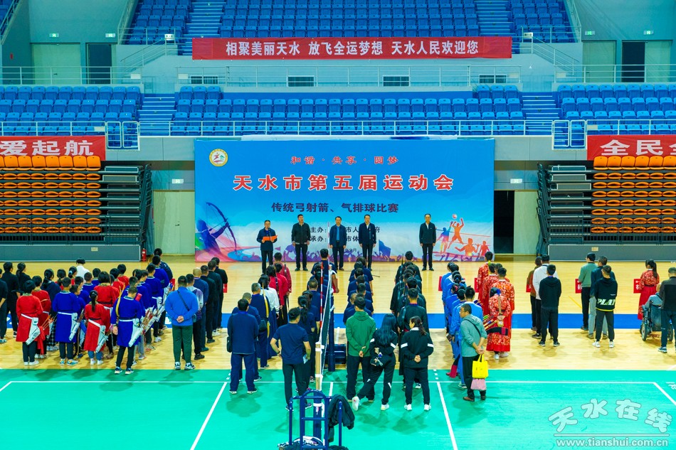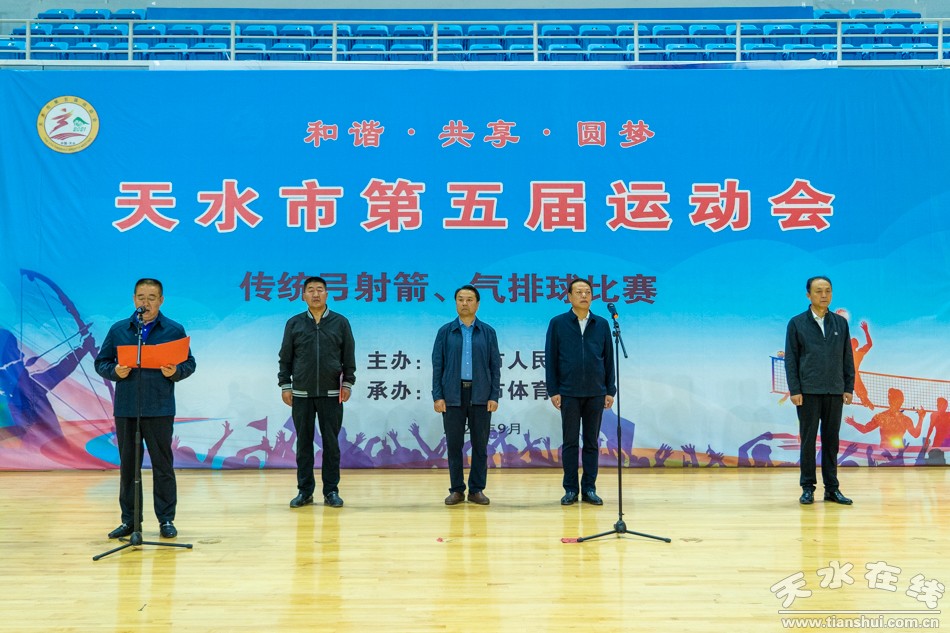 9月19日,天水市第五屆運動會傳統(tǒng)弓射箭、氣排球比賽在天水市體育中心開賽。市體育局黨組書記、局長安平原同志宣布比賽開始。市體育局全體干部職工以及來自我市參加傳統(tǒng)弓射箭比賽、氣排球比賽的運動員、領隊、教練員、裁判員共200余人參加了開賽儀式。
