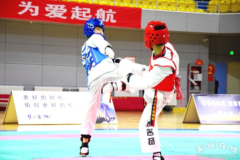 (天水市第五屆運(yùn)動會青少年跆拳道比賽在天水市體育中心開賽)