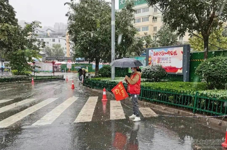 10月10日,天水市突降雨雪,氣溫驟降。雖然寒風(fēng)刺骨,但在市市場(chǎng)監(jiān)管局統(tǒng)一部署下,市特檢所的“紅馬甲”們卻仍然堅(jiān)守在創(chuàng)城“包街”的路段上,他們不畏嚴(yán)寒,用自己的實(shí)際行動(dòng)為文明城市建設(shè)做著積極貢獻(xiàn),成為天水街頭一道“最美風(fēng)景”……