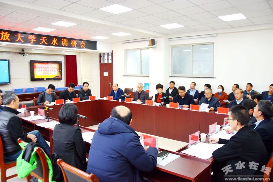 10月12日上午,國家開放大學(xué)副校長鞠傳進(jìn)、甘肅開放大學(xué)校長王宏寧率領(lǐng)調(diào)研組一行13人來甘肅廣播電視大學(xué)天水市分校調(diào)研并座談。會(huì)議由天水市副市長汪小娟主持,市教育局副局長楊愛民,電大天水分校黨委副書記、校長李子園、黨委書記李龍及學(xué)校領(lǐng)導(dǎo)班子成員和中層干部、各縣區(qū)工作站40余人參加了會(huì)議。