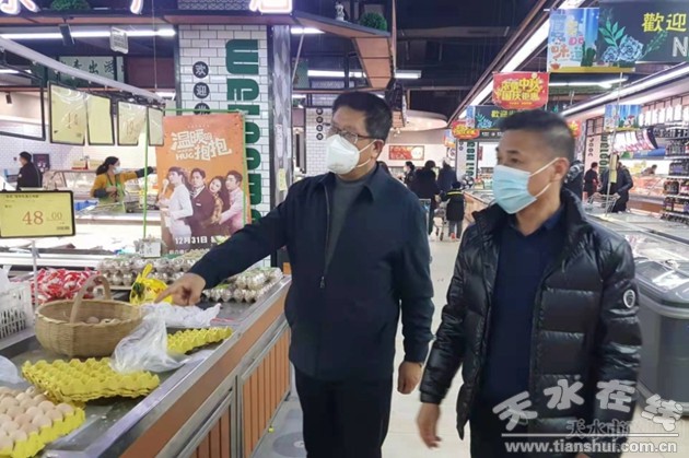 面對(duì)當(dāng)前嚴(yán)峻的疫情防控形勢(shì),為全力做好群眾生活物資保障和保供穩(wěn)價(jià)工作,11月5日,天水市市場(chǎng)監(jiān)管局黨組成員王俊峰帶領(lǐng)相關(guān)科室人員,對(duì)市內(nèi)商場(chǎng)超市疫情防控和明碼標(biāo)價(jià)等情況進(jìn)行了暗訪督查。
