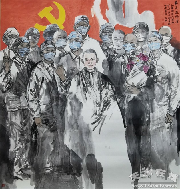 自我省疫情發(fā)生以來,甘肅省畫院美術(shù)館聯(lián)盟充分發(fā)揮藝術(shù)戰(zhàn)線舉旗幟、聚民心,弘揚主旋律、彰顯正能量的作用,弘揚了“風(fēng)雨共舟、守望相助”的真情大愛,以書畫傳情,以筆墨戰(zhàn)疫,向勇士們致敬,表達(dá)著全省人民守護(hù)家園、堅決打贏隴原疫情阻擊戰(zhàn)的堅強(qiáng)決心。此次展出的作品薈萃了甘肅畫院和甘肅省畫院美術(shù)館聯(lián)盟理事在近期以抗疫為主題創(chuàng)作的精品力作,表達(dá)了全省畫院系統(tǒng)書畫家們用畫筆向奮戰(zhàn)在抗疫一線的醫(yī)護(hù)人員和志愿者的敬意、鼓舞士氣、弘揚正氣,把藝術(shù)家的關(guān)懷與溫暖傳遞到疫情防控最前沿,為天水加油,為甘肅加油!