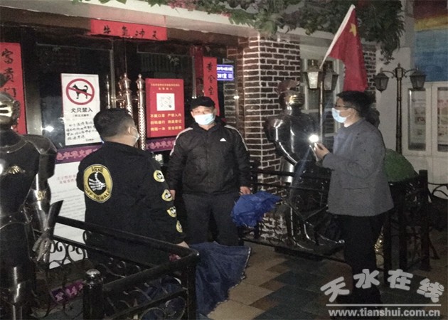 “疫情不退、我們不退,文旅防線、衛(wèi)士守護”。自2021年10月21日凌晨天水文旅市場按下“暫停鍵”后,天水市文化市場綜合行政執(zhí)法隊把守護群眾生命安全當作初心和使命,班子成員帶頭引領(lǐng),臨時黨小組和黨員突擊隊擔(dān)當作為,全力開展疫情防控工作,對全市尤其是涉疫區(qū)域文化市場經(jīng)營場所進行不間斷巡查,堅決杜絕“明關(guān)暗開”違規(guī)行為發(fā)生,阻斷了疫情通過文旅場所傳播的風(fēng)險。
