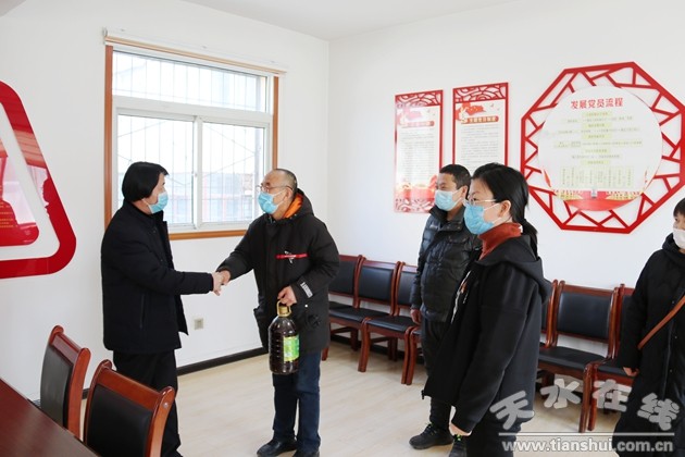 新春佳節(jié)來臨之際,天水市人防辦組織開展了“送溫暖”走訪慰問活動(dòng)。1月24日,市人防辦黨組成員、副主任王永第和蔡向增分別帶慰問組看望了李曉明、劉銳等6位離退休老干部、七里墩街道辦事處羅二社區(qū)3戶困難群眾,為他們送去了大米、食用油等慰問品,也送去了全體干部職工的溫暖,并致以衷心的問候和新春的祝福。
